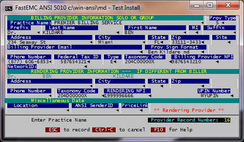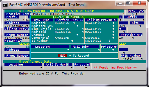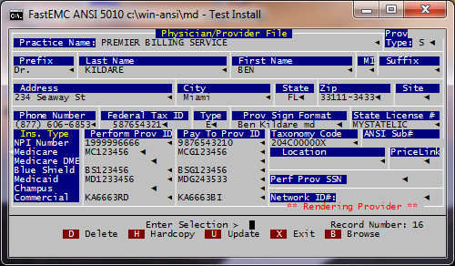 The system maintains a file of providers of service in a group practice or billing service. The user may add, update, or delete a provider from this file. This is option [2] on the Maintenance Menu