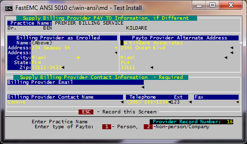 Type in the provider's National Provider Identifier (NPI) number. In a group practice, the individual provider's number (Type 1) would go into the Performing Provider ID field, and the practice's number (Type 2) would go into the Pay-To Provider ID field. If there is only one NPI number, enter it in both fields.